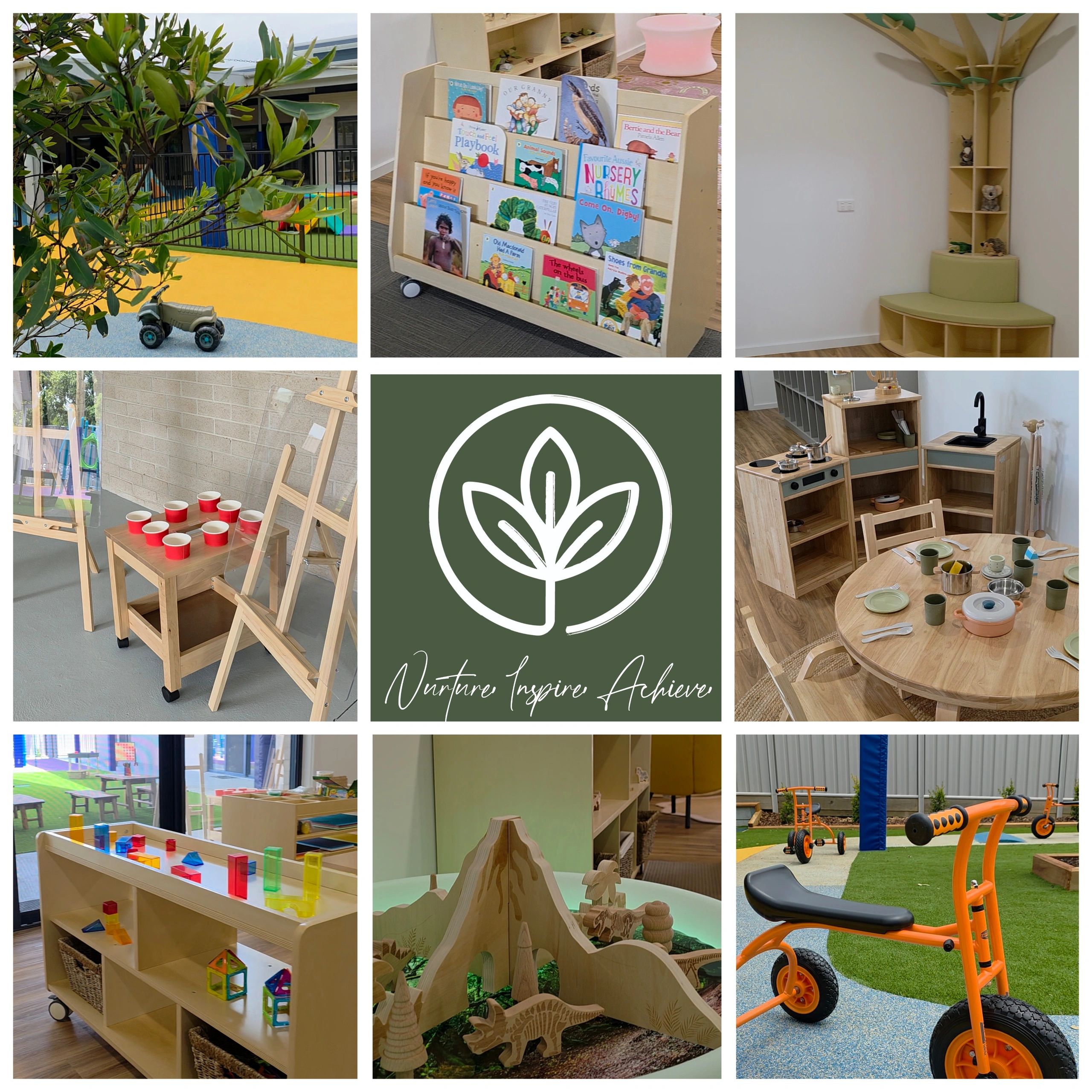 Our motto — Nurture. Inspire. Achieve. — captures the heart of who we are and is represented within our logo: families, educators, and children growing together in harmony and care.